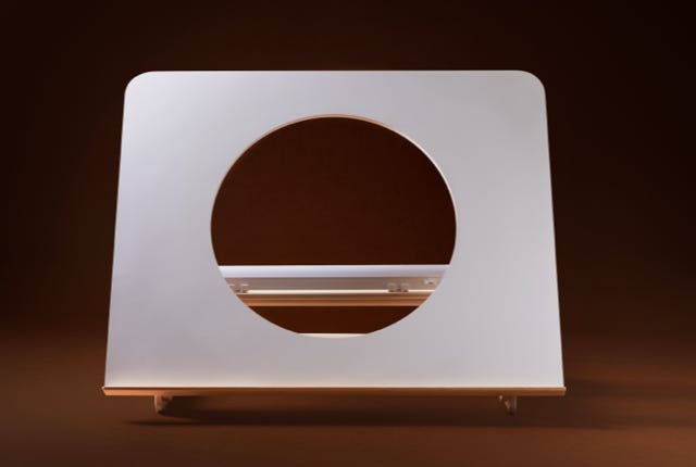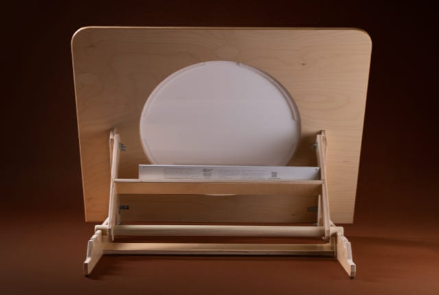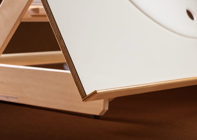 The animation desk combines functionality and style, designed specifically for animators. It features improved LED lighting for a brighter work surface and a rotating Plexiglass disk with tabs and a recessed peg bar for smooth and secure spinning. The desk adjusts to 30°, 45°, or 60° angles for optimal drawing comfort. Key features include non-slip rubber feet to protect furniture, a pencil ledge for tool storage, and a sturdy 24” x 30” high-density plywood top. The LED light offers two brightness settings (soft and bright) and is powered by a standard type A plug. For convenience, the desk folds down to just 4” tall for easy storage.